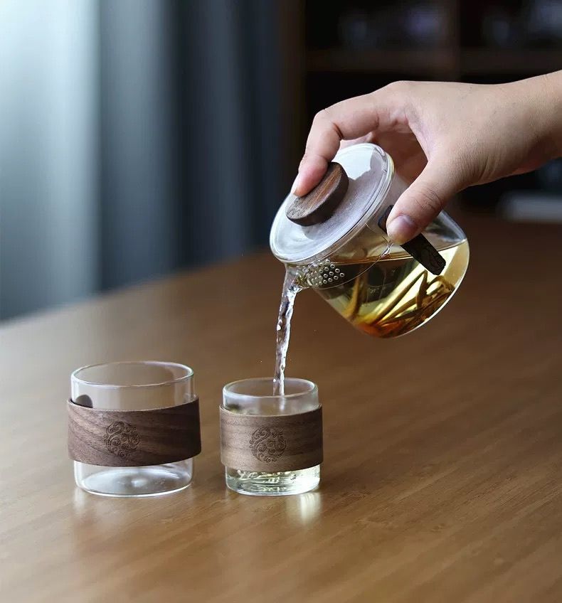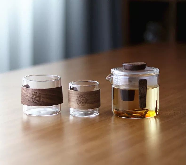 Tea, without preparation Whether at your desk, by a window, or while traveling, this set allows you to begin a tea moment instantly. No setup. No complexity. Just water, tea, and a pause. The Experience Begin with the leaves Slow down. Notice the shape, the texture, the quiet presence of tea. Prepare with intention A simple act, bringing attention back to the present moment. Watch the transformation Color deepens. Aroma unfolds. Time becomes visible. Pour and share A gentle rhythm enters the space. Take the first sip Warmth, texture, stillness — all in one moment. Thoughtfully Designed • Heat-resistant glass teapot with built-in infuser • Double-walled glass cups for comfortable handling • Natural wood sleeve for grip and warmth • Lightweight, compact, and travel-friendly Made for Everyday Life • At home — a quiet morning ritual • At work — a moment to reset • While traveling — tea anywhere, anytime More than a tea set This is not just about brewing tea. It is about creating a small space to slow down, to breathe, and to return to yourself. Perfect for beginners, gifting, or daily tea moments.